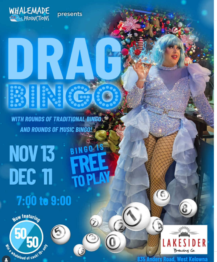 VIEW MAPWest Kelowna! Come out for Whalemade Productions’ extremely popular Drag Bingo night at Lakesider Brewing Co.! A combination of traditional bingo and music bingo! Free to play, with purchase of food or drink.