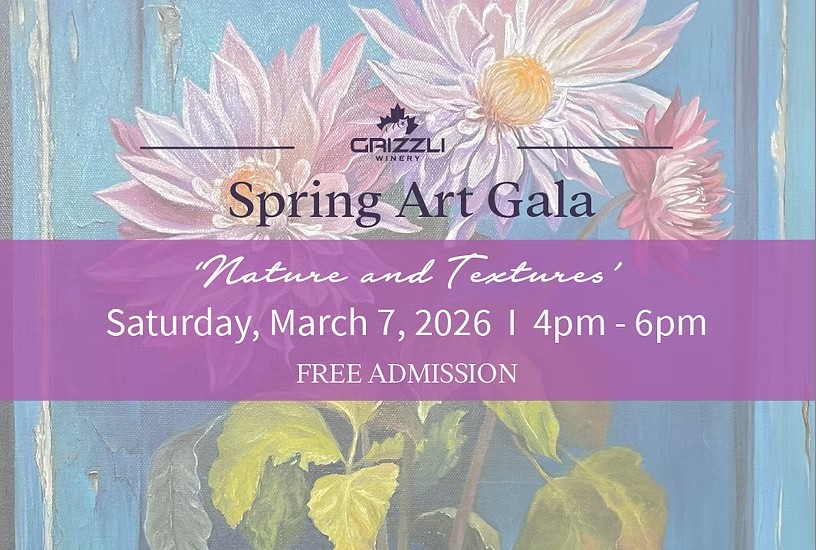 Join Grizzli Winery on March 7, 2026, from 4:00–6:00 PM for the official launch of its Spring Exhibition, featuring local artists Antonina Dunaeva and Irina Bakumenko.